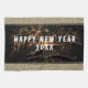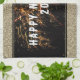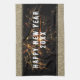 Moderne Gold Glitzer Feuerwerke Frohes Neues Jahr 2023 Küchentücher. Festiges Design mit Imitaten Gold Glitzer und schwarzem Hintergrund. Der Happy New Year Text ist in einem trendigen und modernen weißen Skript auf einem Feuerwerk Foto. Geben Sie die Jahreszahl ein.