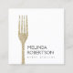 Eine moderne Visitenkartenvorlage mit einer glitzernden Goldgabel und Ihrem Namen oder Firmennamen für die perfekte visuelle Identität. Ideal für Veranstaltungsplaner, Catering, Koch und mehr. © 1201AM CREATIVE