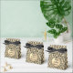 In einer goldenen glänzenden Kulisse gibt es goldene und schwarze Leoparden für Extra-Glamour, im Zentrum befindet sich eine glänzende Goldkugel mit goldgelbem blüh, wo Sie Ihre Veranstaltung personalisieren können und eine stilvolle, tierische Chic-Touch für jede Feier schaffen können