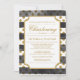 Hier sind moderne Taufeinladungen mit Glamour! Die Einladungen haben einen weißen Zierrahmen und goldfarbene Textdetails, die schwarze, horizontale Streifen im Aquarellstil über Imitat goldene Glitzer-Polka-Punkte. Sie können die Informationen nach Ihren Wünschen anpassen oder ändern. Das Design sieht am besten aus mit abgerundeten Ecken Papier Option.