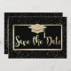 Gold Glitzer Graduation Cap, Confetti Save the Dat Save The Date