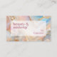 Diese Visitenkarte bietet ein atemberaubendes Opal-Blush-Rosa, Aqua-Blau und glamouröse goldgelbe Marmorquartz-Kunstmuster. Das elegante und auffällige Design ist perfekt für professionelle Beauty-Spezialisten geeignet, die Ihren Stil und Ihre Kreativität präsentieren. Die Visitenkarte verlasse mit ihrem hochwertigen Druck und ihrem langlebigen Cardstock einen bleibenden Eindruck bei Ihren Kunden. Lassen Sie sich von der Menge abheben und machen Sie eine Aussage mit dieser stilvollen und eleganten Visitenkarte.