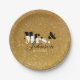 Gold Glitzer Mr. und Mrs. Hochzeitspapier Teller. Goldene Papiertafeln mit Imitaten Glitzern und Glitzer-Druck plus Heiratsdatum. Party zum Abendessen, das für die Hochzeit, das schicke Brautparty, die extravagante Verlobung, das klassische Jubiläum usw. gedruckt wird, mit funkelnd und glänzenden Glanzern, Familienname des Brautpaares und Bräutigam / Ehemann und Ehefrau.
