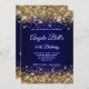 Gold Glitzer Navy Blue Ombre Extravagant Monogram Einladung