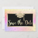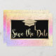 Eleganter goldener Glitzer Graduierte Mütze und Konfetti auf einer Rose Gold Glitzer ombre Hintergrund.