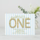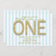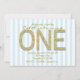 GOLD GLITZER ONE Blue Stripe 1. Party Einladung.