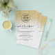 Erzählen Sie Ihrem Kunden von Ihrer neuen Wiedereröffnung mit neuen Sicherheitsmaßnahmen ... mit diesem goldgelben Glitzer-Ober auf schicken weißem Marmor, fügen Sie Ihr Logo hinzu und fügen Sie Ihre Preislisten und Dienstleistungen auf der Rückseite ein