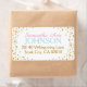 Der goldene Glitzer mit rosa, blau und gelb glänzenden Sprinklen bestreut das Gender-neutrale Adressetikett.