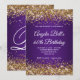 Gold Glitzer Royal Lila Monogram 60. Geburtstag Einladung
