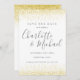 Entworfen, um mit unserer Signature Hochzeitskollektion zu koordinieren. Diese elegante Save the Date-Karte mit ihren Stilnamen und dem goldenen Glitzer kann mit Ihren besonderen Informationen zum Hochzeitstag in schicken grauen Buchstaben personalisiert werden. Entwickelt von Thisisnotme©