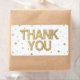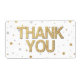 Festliche Konfetti-Punkte und Kreise mit bedrucktem Gold-Glitzer und Silberfolieneffekten. Vielen Dank in hübschen Imitaten glänzend goldenen Blockschrift zu zeigen, Ihre Wertschätzung für das Geschenk, die Anwesenheit oder andere Gelegenheit. Metallische Optik ist modern und trendig.