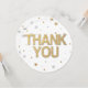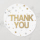 Festliche Konfetti-Punkte und Kreise mit bedrucktem Gold-Glitzer und Silberfolieneffekten. Vielen Dank in hübschen Imitaten glänzend goldenen Blockschrift zu zeigen, Ihre Wertschätzung für das Geschenk, die Anwesenheit oder andere Gelegenheit. Metallische Optik ist modern und trendig.