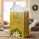 "Frieden, Freude und Liebe." Eine riesige, lustige, spielerische, weiße und dunkelgrüne Schneeflocke-Illustration und eine moderne Typografie auf funkelnd, Imitat-Gold-Glitzer-Hintergrund helfen Ihnen, die Feriensaison zu beginnen. Ein weißer Konfetti-Punkt umrahmt den oberen Rand. Genießen Sie die Wärme und Freude der Ferien, wenn Sie diese atemberaubende, grafische, personalisierte, mittelgroße Geschenktasche verwenden. Passende Umschläge, Aufkleber, Totbeutel, Packpapier, Kissen, Zuhause-Dekor und vieles mehr sind ebenfalls erhältlich. verwandelt ein großartiges Geschenk in etwas noch Besseres! Geben Sie einfach den Gruß Ihrer Wahl ein und Sie können diese Geschenktasche ganz einfach personalisieren. Bitte schicken Sie mir eine Nachricht mit Fragen oder Wünschen.