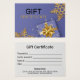 Elegantes und hochwertiges Urlaubsprojekt mit glamourösen Goldschneeflocken und Geschenkboxen auf blauem Hintergrund. Dieses festliche Geschenkgutschein ist ideal für kleine Firmen oder für kleine Gruppen, besonders für Weihnachten.