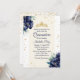 Gold Glitzer Tiara Royal Blue Floral Quinceanera Einladung