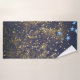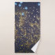 Gold Glitzer und glitzernde blaue Sterne auf schwa Badehandtuch
