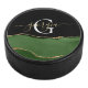 Gold-Glitzer und Green-Agate-Monogramm Eishockey Puck