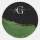 Gold-Glitzer und Green-Agate-Monogramm Runder Aufkleber