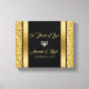 Moderner goldener Glitzer mit weißen Funken und goldschwarzem Rahmen und silbernen Diamantenherzen. 50. Hochzeitstag