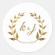 Gold Glitzer Wreath Monogram Wedding Save the Date Runder Aufkleber
