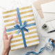 Gold glitzernde Streifen Geschenkverpackung. Hübsch zu Weihnachten oder zu jeder Gelegenheit.
