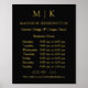 Modernes Minimalistisches Gold Foil Print Poster. Schwarzer Hintergrund oder wählen Sie Ihre eigene Farbe. Ideal für Kleinunternehmen, Firmenmarken, Selbstständige, kleine Kioske, Einzelhandelsgeschäfte, Messen & Events, Schönheitssalons, Wellness-Center, Caterer, Bäckereien, Kaffeehäuser, Restaurants, Bars und vieles mehr. Einfach mit Ihren Monogramm-Initialen, Firmennamen und Informationen, Fotos, Slogan oder sogar mit Ihrem Logo oder persönlichem Markendesign personalisieren.