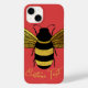 Niedliches Hummeldesign mit benutzerdefiniertem Text für einen Namen oder eine Nachricht. Das Design zeigt eine Hummel mit kontrastierenden glänzenden gelben und schwarzen Streifen. Die Flügel sind ausgestreckt, auch in den gleichen Farben Schwarz und Gold. Der benutzerdefinierte Text ist in einem kalligraphischen Stil, der um die Biene in einem hellgelben Gold kurbelt. Dieses einfache Bienendesign ist großartig für jeden, dessen Lieblingsinsekt eine Biene ist, oder der das Schwarz-Gold-Design mag, oder der ein einfaches Bienendesign will, um sie oder ihre Freunde daran zu erinnern, die Bienen achtzugeben, um sie retten. In diesem Design ist es Set vor einer hellroten Hintergrundfarbe.