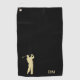 Dieses unverwechselbare Golftuch mit einem goldenen Golfer aus der Silhouette, der auf dem unteren Teil in vollem Schwung ist. Neben dem Bild ist Ihr Monogramm in passendem Gold. Text und Bild werden auf einem schwarzen Hintergrund platziert.