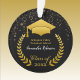Graduation ornament gift for that special high school or college grad with custom front and back text. Features image of a gold grad cap and laurel wreath printed on a black background on sturdy acrylic. Accented with faux gold confetti. Red, blue and other cap colors also available in this same design