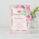 Gold Grad Cap Wasserfarben Blume Dots Abschluss Einladung