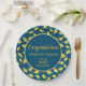 Gold Graduierungsklammern auf blauem Personalisier Pappteller