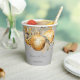 Papiertassen, die als Hochzeitsgeschirr für einen Hochzeitsempfang, ein Probe-Dinner oder ein Brautparty verwendet werden können, mit dem Motto der goldenen Weihnachtsfeier.