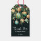 Elegant Christmas holiday party favor gift tags feature pine branches, green and gold Christmas ball ornaments and ribbons on a black background with your details in chic lettering, perfect for your festive holiday gathering. MATCHING items in our collection.