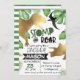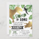 Gold Green Dinosaurier Geburtstagseinladung Suchen Sie eine kühne Dinosaurier Einladung für Ihre kleine Jungen Geburtstagsparty? Dieses Design hat zwei goldene Dinosaurier-Silhouetten, grünes tropisches Blattschwarz Banner und fett grün und rückwärts. Dies ist ein cooler Weg, um Freunde und Familie Ihres kleinen Jungen zu seiner Dinosaurier-Geburtstagsparty einzuladen.