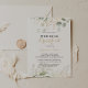Gold Green Foliage Calligraphy Wedding Breakfast Einladung