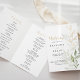 Dieses goldgrüne, gefaltete Hochzeitsprogramm ist perfekt für eine rustikale Hochzeit. Dieses künstlerische Design mit handgezeichnet Aquarellgold und grünem Blattwerk inspiriere natürliche Schönheit. Geben Sie ein Angebot oder eine kurze Nachricht, die Reihenfolge des Dienstes, Hochzeitsfeier und Dankeschön Nachricht.
