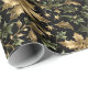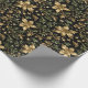 Gold & Green Leaves Wrapping Paper on Dark Back Geschenkpapier