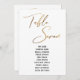 Dieses schlichte, elegante Design besticht durch den "Table Seven", der in einem modernen Schriftart in Handschrift dargestellt und mit einem Imitat-Metallic-Goldeffekt geschmückt ist. Der Schriftart für Namen kann auf Wunsch geändert werden. Wie auch die Hintergrundfarbe. Die Details werden sowohl vorne als auch hinten angezeigt. 151 //