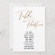 Dieses schlichte, elegante Design zeichnet sich durch die "Table Thirteen" aus, die in einem modernen Schriftart in Handschrift dargestellt und mit einem Imitat-Metallic-Goldeffekt geschmückt sind. Der Schriftart für Namen kann auf Wunsch geändert werden. Wie auch die Hintergrundfarbe. Die Details werden sowohl vorne als auch hinten angezeigt. 151 //