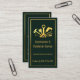 Ein exquisites dunkelgrünes Cover wird durch einen goldenen, rechteckigen Rahmen hervorgehoben. Oben ist ein goldenes "Zuhause handyman tools" Logo, das Sie benutzen können. Darauf folgen der Firmenname und ein Slogan, den Sie ändern können. Die Kontaktdaten befinden sich in der Nähe der Kartenbasis. Overleaf, das gleiche Design-Thema wird mit einem goldenen Logo für Zuhause-Tools oben verwendet. Danach folgen Ihr Name, die Kontaktdaten und eine Slogan-Beschriftung. Ein schönes Cover für Handwerker und Gebäude-Auftragnehmer. #handyman #construction #homeconstruction #homerepair #building #builder #builder #remodeldeling #handymantools #interiordesign #Gebäude