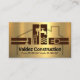 Ein goldenes Cover mit vier braunen Streifen-Tabs, die verschiedene handwerkliche Konstruktionswerkzeuge enthalten. Hinter diesem Motiv steht ein hellbrauner Hausrahmen. Die Werkzeuge können einen Teil des Service darstellen, den Sie anbieten, z.B. der Hammer kann Schreiner- oder Zuhause-Reparaturen darstellen, die Leitern-Bürste zum Malen und Umformen, der Wasserhahn zum Klemmen und der Power-Stecker für Elektroarbeiten. Die Verwendung jedes Tools ist links, um Ihre eigene Interpretation Ihres Services zu erhalten. Unterhalb des Designs befindet sich der Firmenname und seine Kontaktdaten. Auf der Rückseite, in einer weißen Abdeckung, befindet sich oben ein goldenes Hammer-Logo, das Sie verwenden können. Danach folgen Ihr Name, Ihre Kontaktdaten und ein Slogan, um Ihre Dienste bekannt zu machen. Eine Karte für Handy- und Gebäude-Themen.