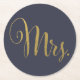 niedliche marineblaue Untersetzer mit eleganten Imitaten, goldene Folie mit Schriftzeichen, die das Wort Mrs. auf der Vorderseite zeigen. Untersetzer mit dem Wort Mr. hier verfügbar.