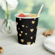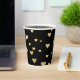 Ein einfaches, minimalistisches Design mit einem unregelmäßigen, abstrakten Muster von Goldherzen auf schwarzem Hintergrund. Die perfekte Touch niedlicher Glam für jede Feier.
