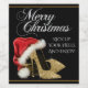 Gold High Heel Schuhweinflaschen Etiketten mit hübschen goldglänzenden High Heel Schuhen und süß roten Santa Hut auf einem eleganten schwarzen und goldenen Hintergrund mit elegantem goldenen Drehbuch Merry Christmas. Sie können diese individuellen und firmeneigenen Weihnachtsweinflaschen-Etiketten ganz einfach an Ihre Veranstaltung anpassen, indem Sie einfach den Text Ihrer Wahl hinzufügen.