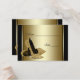 Gold High Heel Tisch Sitzkarten mit hübschen goldenen High Heel Schuhen auf einem schönen schwarzen und goldenen Hintergrund. Fügen Sie den von Ihnen gewünschten Text in den von Ihnen bevorzugten Schriftart ein. Sie können auch die Hintergrundfarbe ändern. Dies ist ein gedrucktes Design ohne echten Glitzer, Folie, etc.