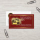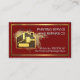 A dark red maroon cover is accentuated by a faux gold rectangular frame. A faint gold paint splatter on the left has a gold home-paint brush design. Over at the top is your business name which you can change with the contact details near the base of the card.