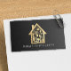 Moderne Reinigungsdienste Visitenkarte mit Reinigungseinrichtungen im Haus und Firma/Firmenname in moderner Hauptstadt Schrift. Perfekt für die Reinigung von Haus und Industrie.