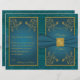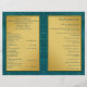 Dieses aquamarine und goldene Hochzeitsprogramm passt zu den unten gezeigten Einladungen und anderen Dingen. Es ist so konzipiert, dass es in der Mitte gefaltet wird. ****BITTE BEACHTEN SIE, dass es sich bei dem hochwertigeren Papier um einen Kartenvorrat handelt und sich nicht gut falten lässt.