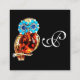 GOLD JEWEL OWLS Monogram, Blue Sapphire Topaz, Bla Quadratische Visitenkarte