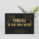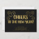 Ring in das neue Jahr im Stil mit dieser schwarzen und (Imitate) goldenen Neujahrsfeier Party Einladung. Dieses typografische Design zeigt die Phrase "Feiern zum Neujahr" in Imitaten goldgeputzten Schriftart, vor einem soliden schwarzen Hintergrund. Die Details Ihres Party sind am Ende der Einladung in Gold.